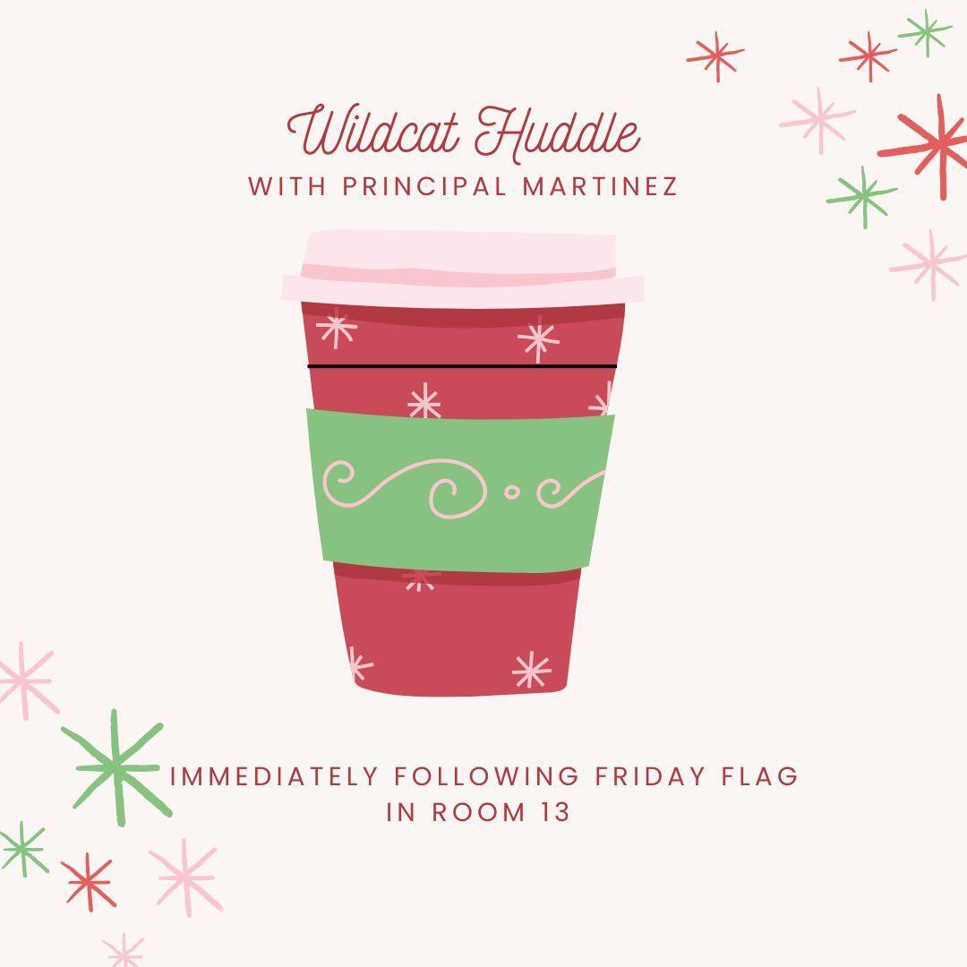 Parents are welcome to stay after Friday Flag for Wildcat Huddle with Principal Martinez in Room 13.